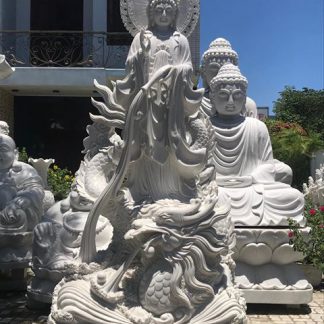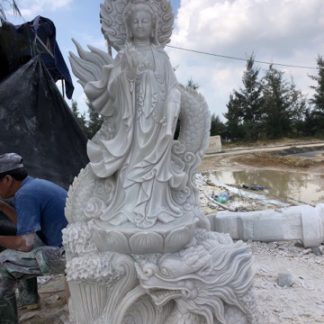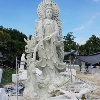 Tượng đá Quan Âm rồng 3m2, tượng Quan Thế Âm Bồ Tát cưỡi rồng cao 3m2 thích hợp với không gian chùa chiền lẫn mong muốn thỉnh tượng Phật thờ tại gia của nhiều gia chủ.